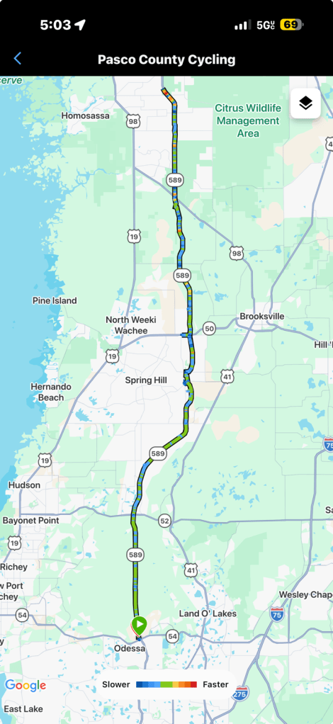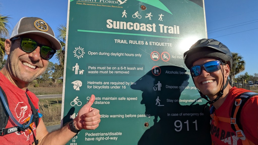 This past weekend, my brother and I completed another 100 mile bike day. This time we rode the Suncoast Trail, a paved path that begins in Odessa and ends near Crystal River, running next to Highway 589.